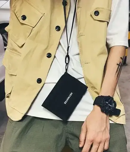 กระเป๋าสตางค์ใบสั้นสีดำ มีสายคล้องคอ